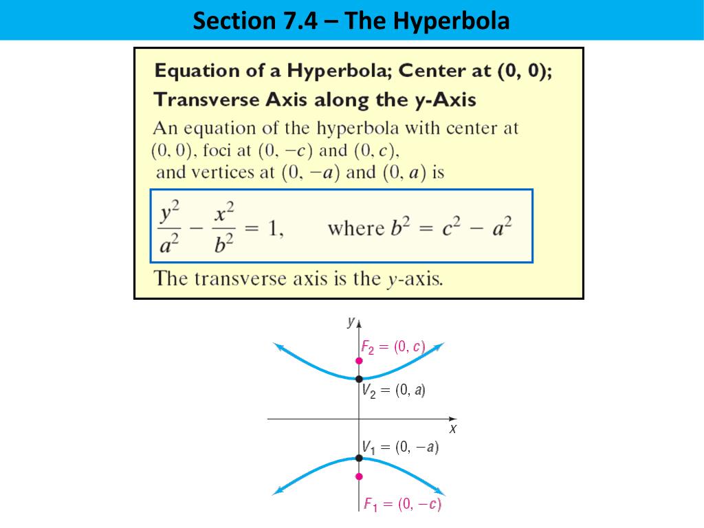 In analytic geometry, a hyperbola is a conic . The endpoints of the transverse axis are called the vertices of the hyperbola. Y = −(b/a)x · a fixed point . Locating the vertices and foci of a hyperbola. To find the vertices, set x=0 x = 0 , and solve for y y.